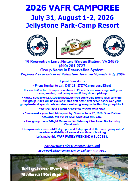 Make plans today to join fellow VAFR members and their familes at the 2026 VAFR Camporee.